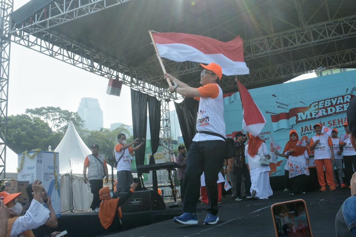 Ribuan anggota dan simpatisan PKS Jakarta Timur dengan penuh semangat hadir mengikuti Gebyar Kemerdekaan : Jalan Sehat DPW PKS DKI Jakarta yang diadakan di lapangan masjid Agung Al Azhar Kebayoran Baru Jakarta Selatan.