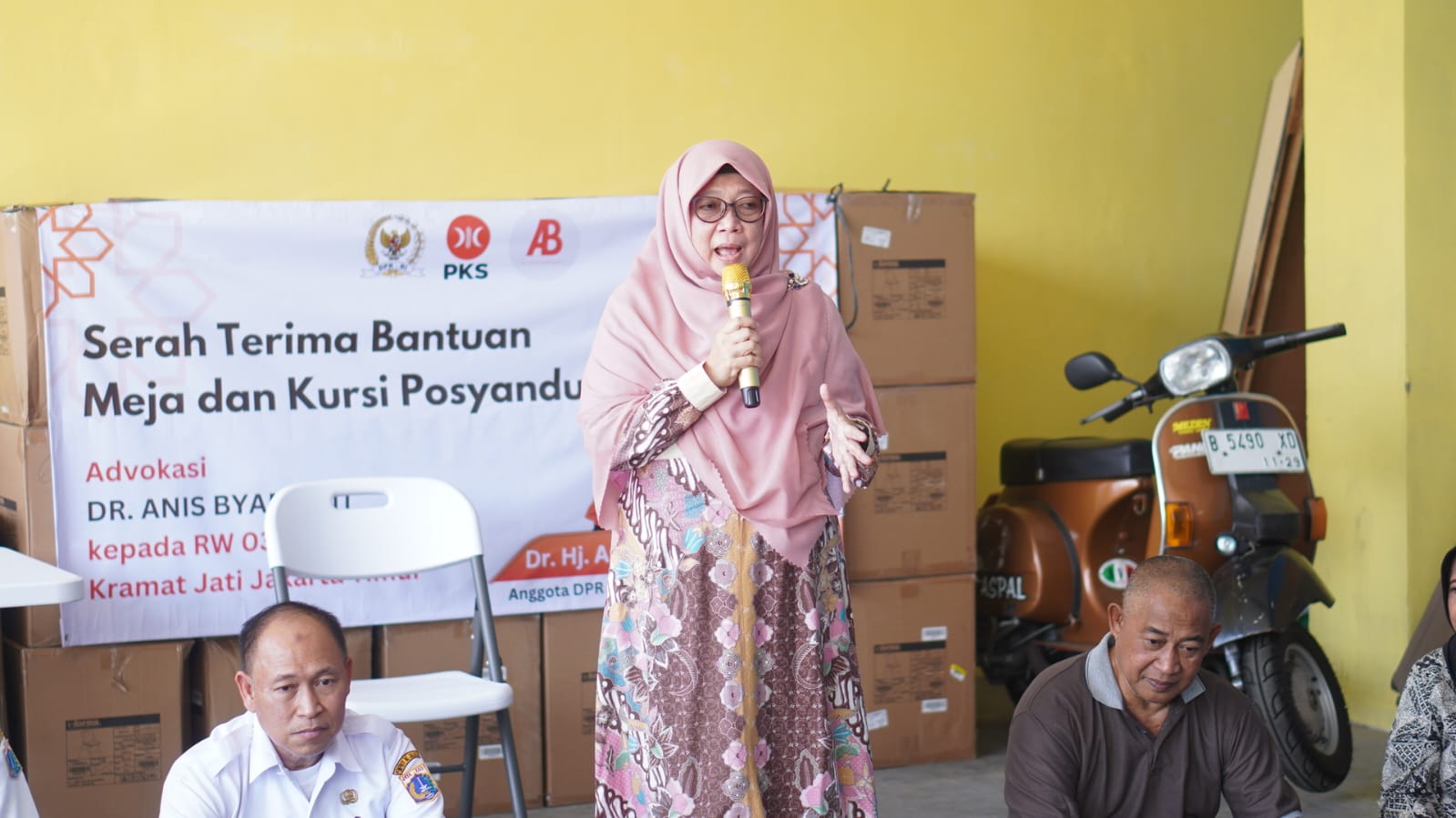 Jakarta Timur, Kegiatan serah terima meja dan kursi untuk Posyandu Lansia dan Balita RW 03 Kelurahan Batu Ampar, Kecamatan Kramat Jati, berlangsung di Aula RW 03, Rabu (25/2). Bantuan ini merupakan hasil advokasi Anggota DPR RI, Dr. Anis Byarwati, M.Si, sebagai bagian dari upaya mendukung peningkatan layanan kesehatan masyarakat.