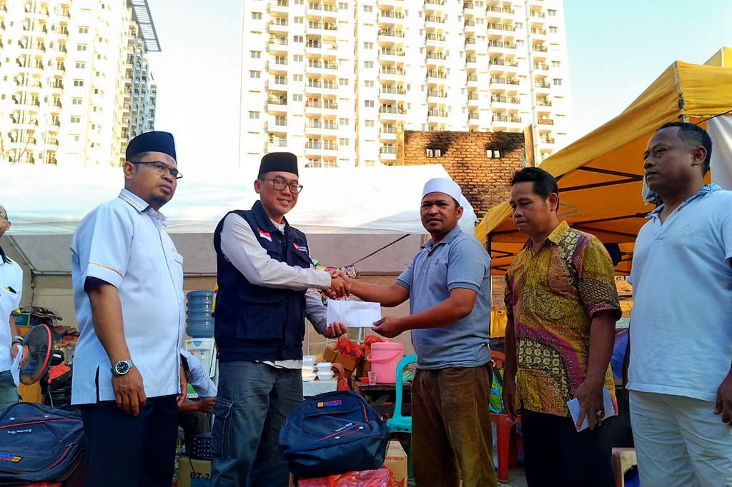 Ketua DPD PKS Jakarta Timur yang juga anggota legislatif (aleg) Fraksi PKS DPRD DKI Jakarta, M. Taufik Zoelkifli mengunjungi lokasi kebakaran rumah semi permanen di RW 01 Cawang, Kramat Jati, Jakarta Timur, Ahad (20/10/2019) sepulang ibadah umrah.