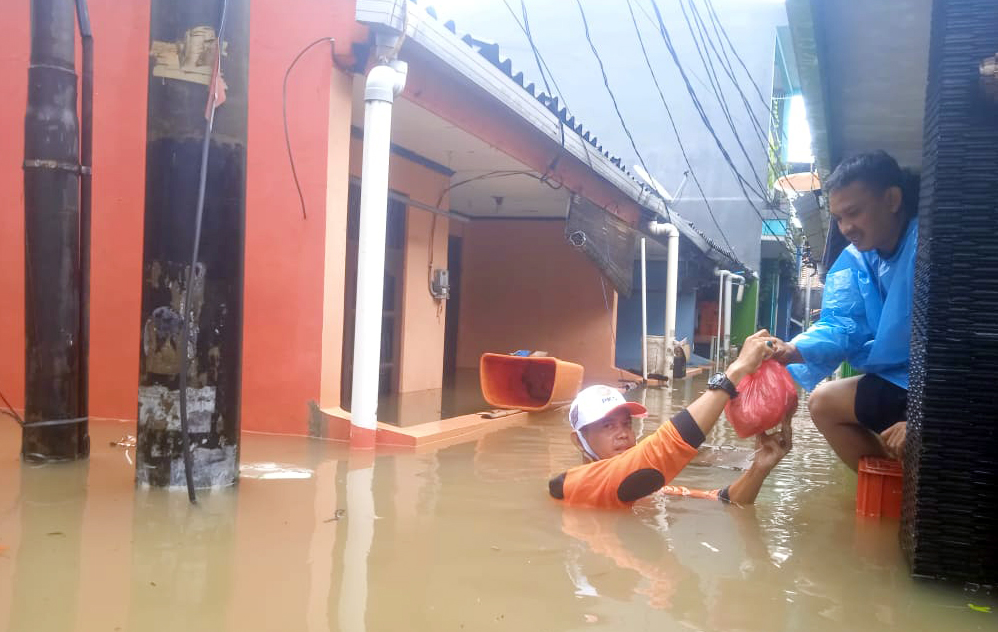 Kader DPRa Kramatjati menyusuri jalan yang terdampak banjir untuk memberikan bantuan kepada korban banjir
