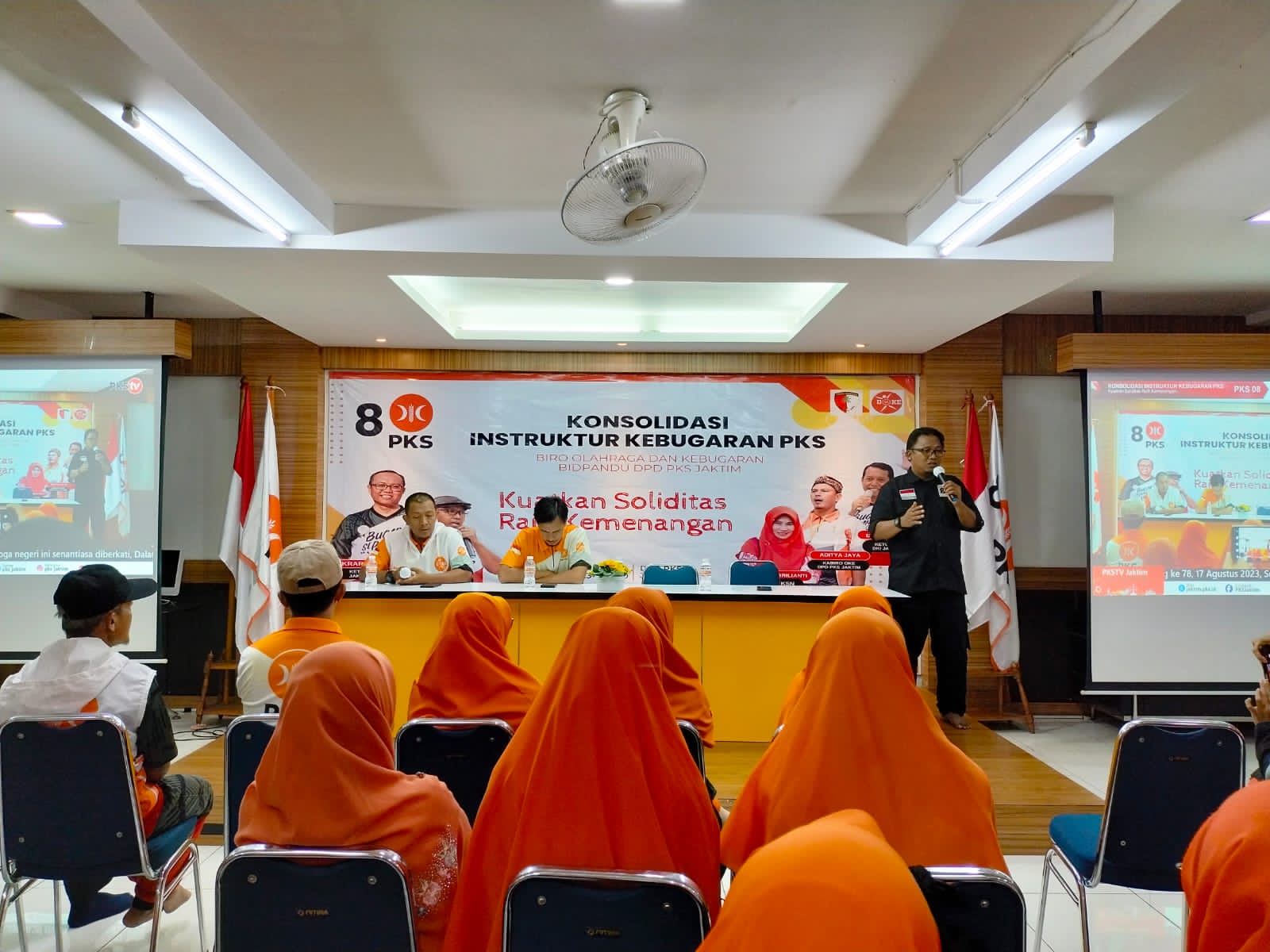 iro Olahraga Bidang Kepanduan PKS Jakarta Timur mengadakan konsolidasi instruktur kebugaran PKS dengan tema Kuatkan Soliditas Raih Kemenangan (Sabtu, 6 Agustus 2023). Menurut Sugito Ketua DPD PKS Jakarta Timur bidang Kepanduan, acara ini adalah upaya PKS untuk mempersiapkan diri menghadapi kemenangan pemilu 2024 dengan mengoptimalkan elemen-elemen PKS salah satu nya melalui titik-titik senam yang dikelola para instruktur kebugaran PKS Jakarta Timur.