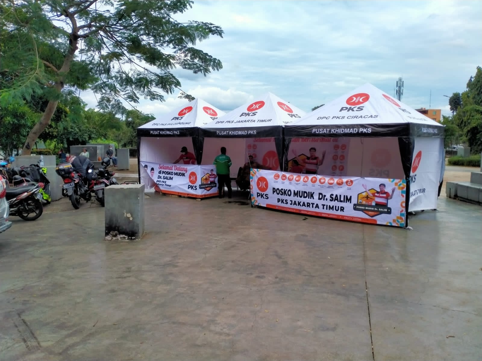 Kamis, 28 April 2022, tampak anggota bidang kepanduan dan anggota Kesejahteraan Sosial PKS Jakarta Timur tengah mempersiapkan Posko mudik PKS yang dinamakan Posko Mudik Dr Salim yang berlokasi di Prapatan Pasar Rebo, Jl. TB Simatupang, Ciracas, Jakarta Timur.