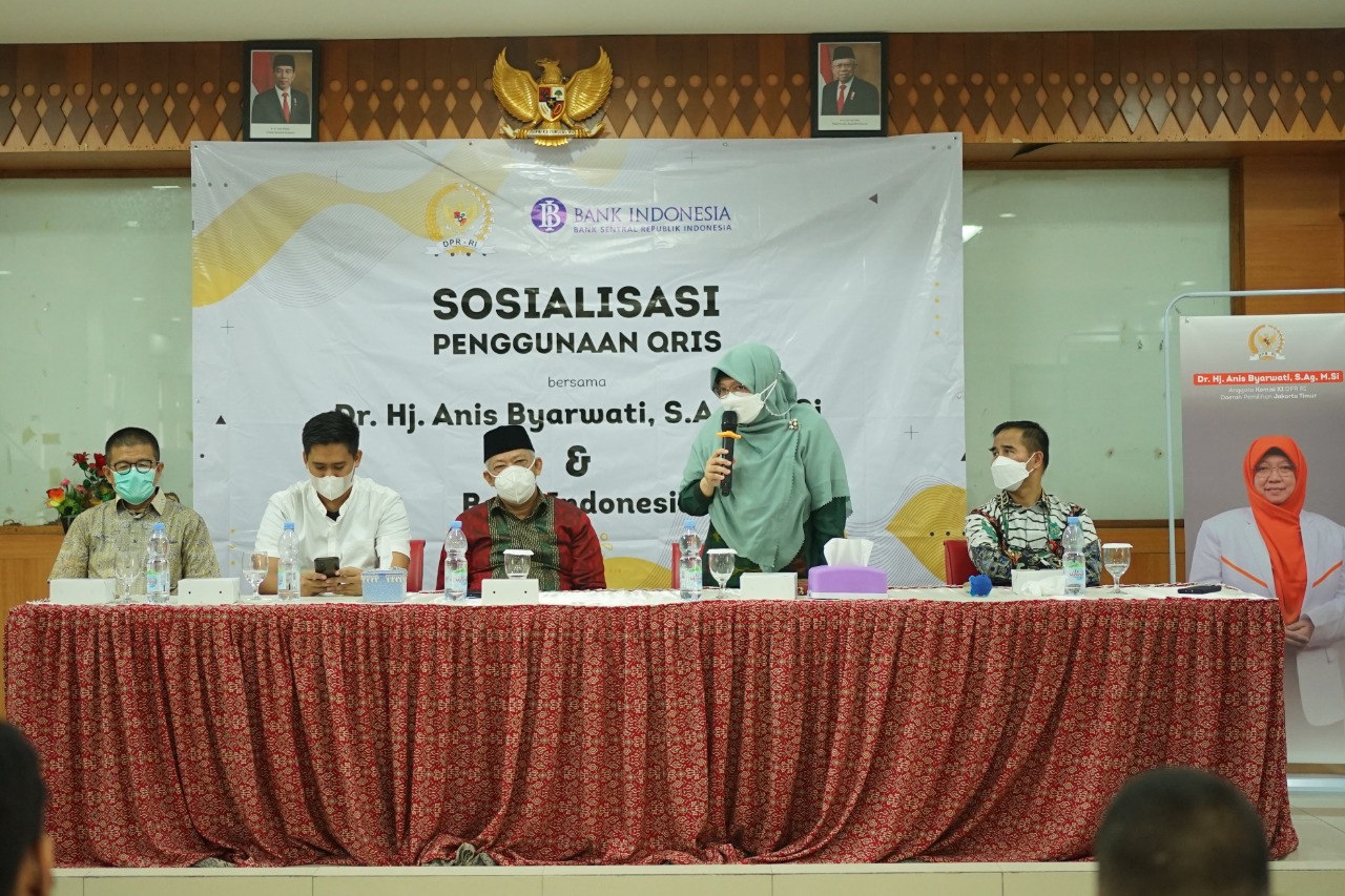 Sabtu (30/10/2021), anggota Komisi XI DPR RI dari daerah pemilihan Jakarta Timur, Anis Byarwati, menghadiri acara sosialisasi kebijakan Bank Indonesia yaitu Quick Response Code Indonesian Standard (QRIS). QRIS merupakan salah satu standarisasi pembayaran menggunakan metode QR Code dari Bank Indonesia agar proses transaksi dengan QR Code menjadi lebih mudah, cepat, dan terjaga keamanannya. Acara sosialisasi yang dihadiri segmen millennial ini dilaksanakan di kantor kecamatan Makasar, Jakarta Timur.
